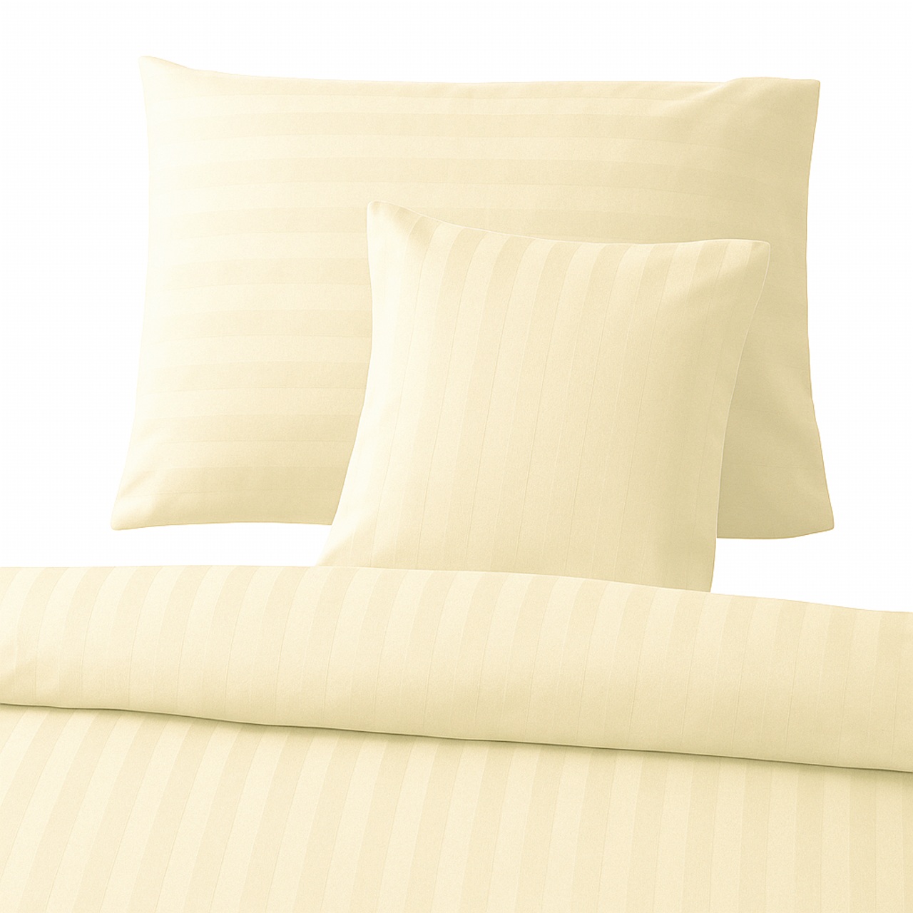 Elegantní smetanové povlečení z vysoce kvalitní 100% česané bavlny s atlas grádlovou vazbou a proužky o šíři 20 mm. Gramáž 150 g/m², rozměr 140x200 a 70x90 cm.