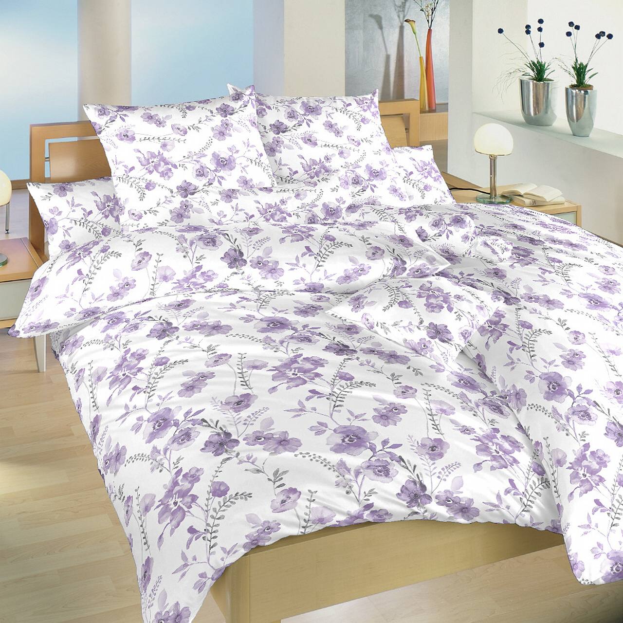 Francouzské povlečení krep Kvítí fialové na bílém – 220x200 cm + 2ks 70x90 cm