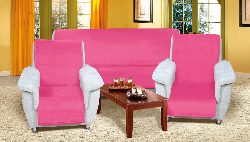 Tato luxusní jednobarevná souprava poslouží jako ochrana sedací soupravy před poškozením nebo jako dekorační doplněk obývacího pokoje. Velice snadno se přizpůsobí tvaru sedací soupravy. Souprava je velice jemná a příjemná na dotek. Kraje jsou obšité velurovou stuhou, která zaručuje dlouhotrvající pevnost okraje přehozů.