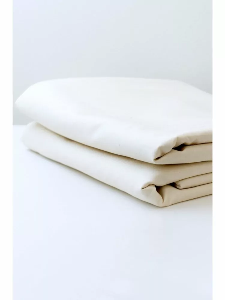 - Režná biobavlna, která není chemicky ošetřena – je zcela naturální (při bližším prozkoumání uvidíte i kousky tmavšího bavlníku ve struktuře látky), nebělená a nebarvená.