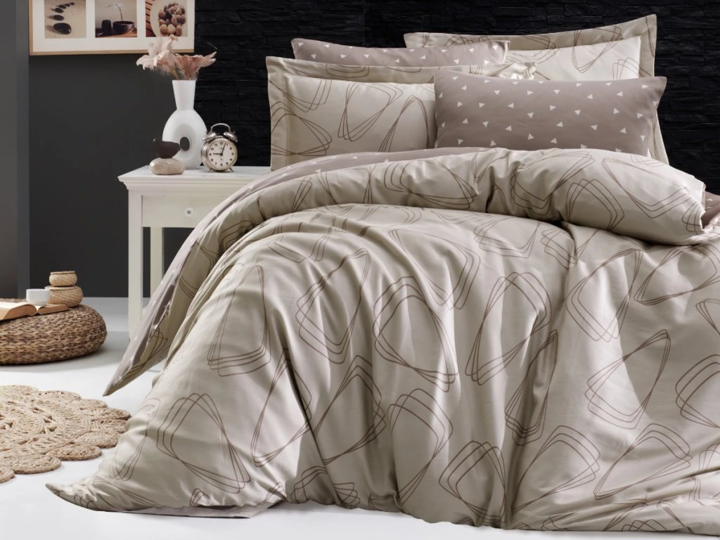 Elegantní povlečení v hnědých a béžových tónech s moderním geometrickým vzorem