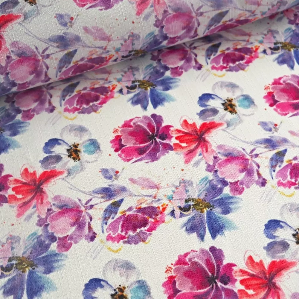 Teflonová látka se vzorem výrazných květů.
