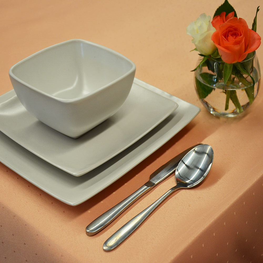 Kvalitní materiál s vodoodpudivou úpravou ve vysoké gramáži. Gramáž ubrusu 250g/m2 zaručuje rozměrovou stálost a pevnost materiálu. Proto jsou tyto ubrusy vhodné nejen do domácností, ale i do gastro provozů, kde jsou větší nároky na opotřebení. Okraje ubrusu jsou opalované do jemné vlnky.