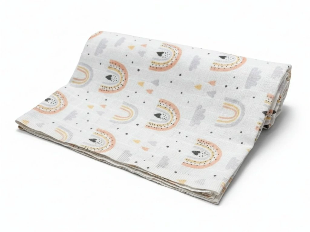 Bavlněná osuška je jemná a měkká, se vzorem duhy