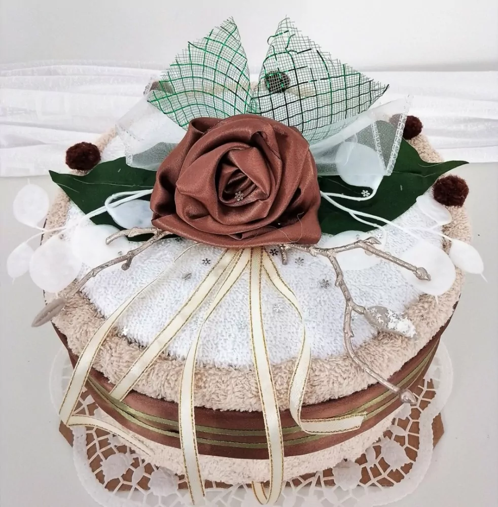 Textilní dort jednopatrový - růžičkaDodání do 5 dnů518 Kč/ ks428 Kč bez DPH