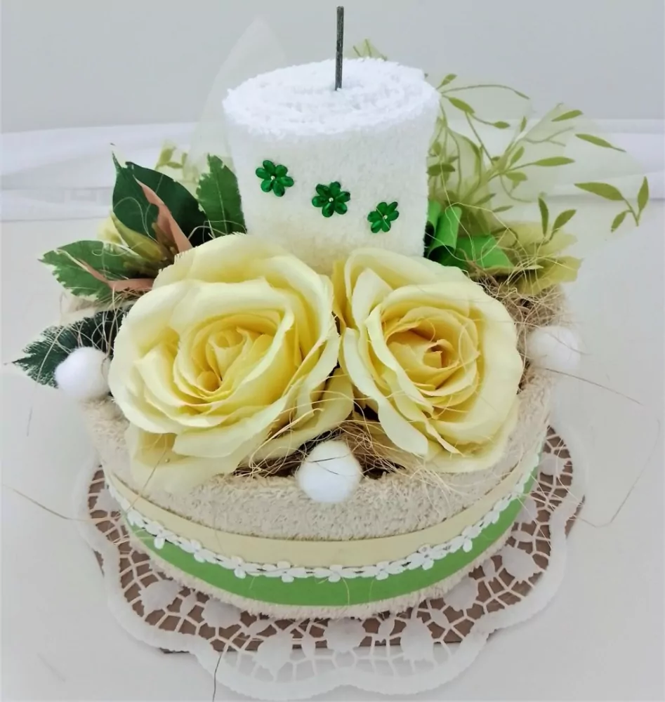 Originální dárek textilní dort z ručníků.