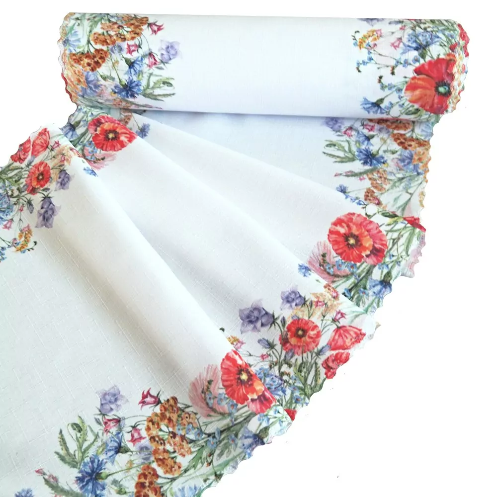Ubrusová šála je ideální doplněk Vašeho stolu, jelikož se jedná o metráž, můžete si zakoupit libovolně dlouhý pruh. Šálu si také můžete nastříhat, například na prostírky nebo ubrousky. Šíře této látky je 38cm a délka až 12m. Díky své délce je vhodná na zdobení rautových stolů. Tiskové šály jsou z teflonu, nevsakují tekutiny, proto se velice dobře udržují.