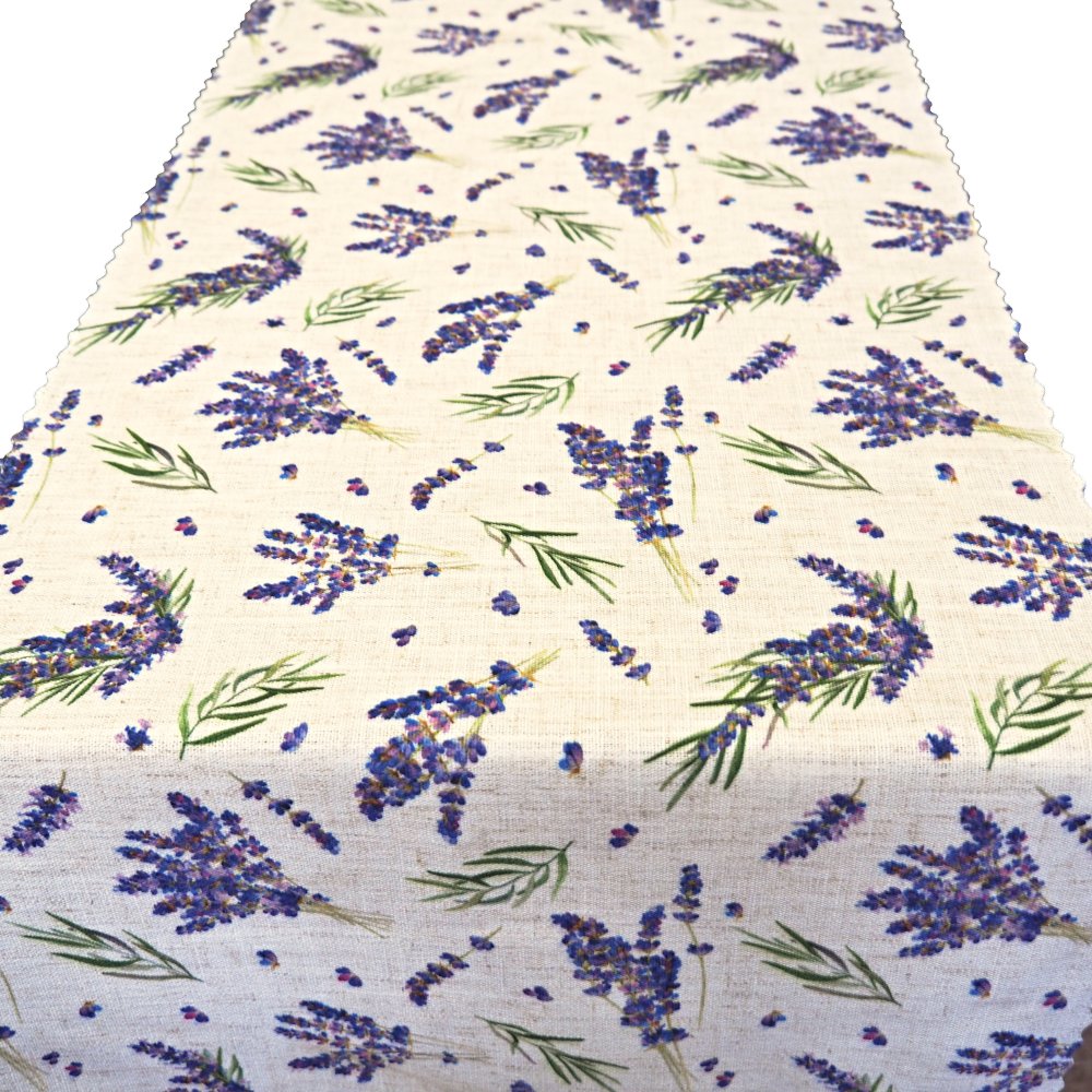 Ubrusy a ubrusové šály s motivem levandule jsou praktickým a dekorativním doplňkem jídelních i konferenčních stolů. Díky jemné struktuře látky a neutrálnímu vzhledu se snadno kombinují s různými styly interiéru a jsou vhodné jak pro každodenní použití, tak pro slavnostní příležitosti.