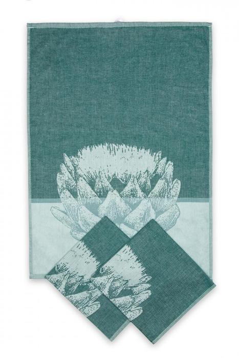 Sada tří bavlněných žakárových utěrek se vzorem artyčoku