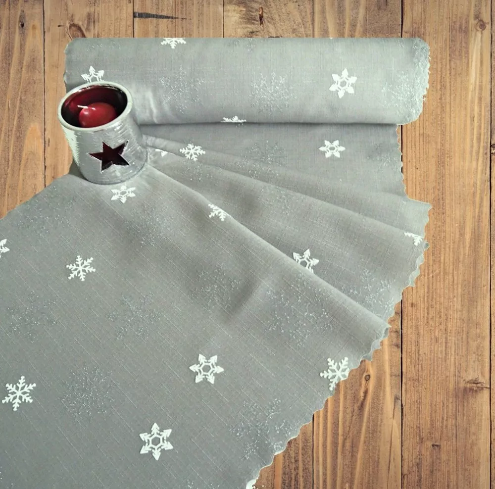 Vánoční běhoun v metráži Sněhová vločka - šedé