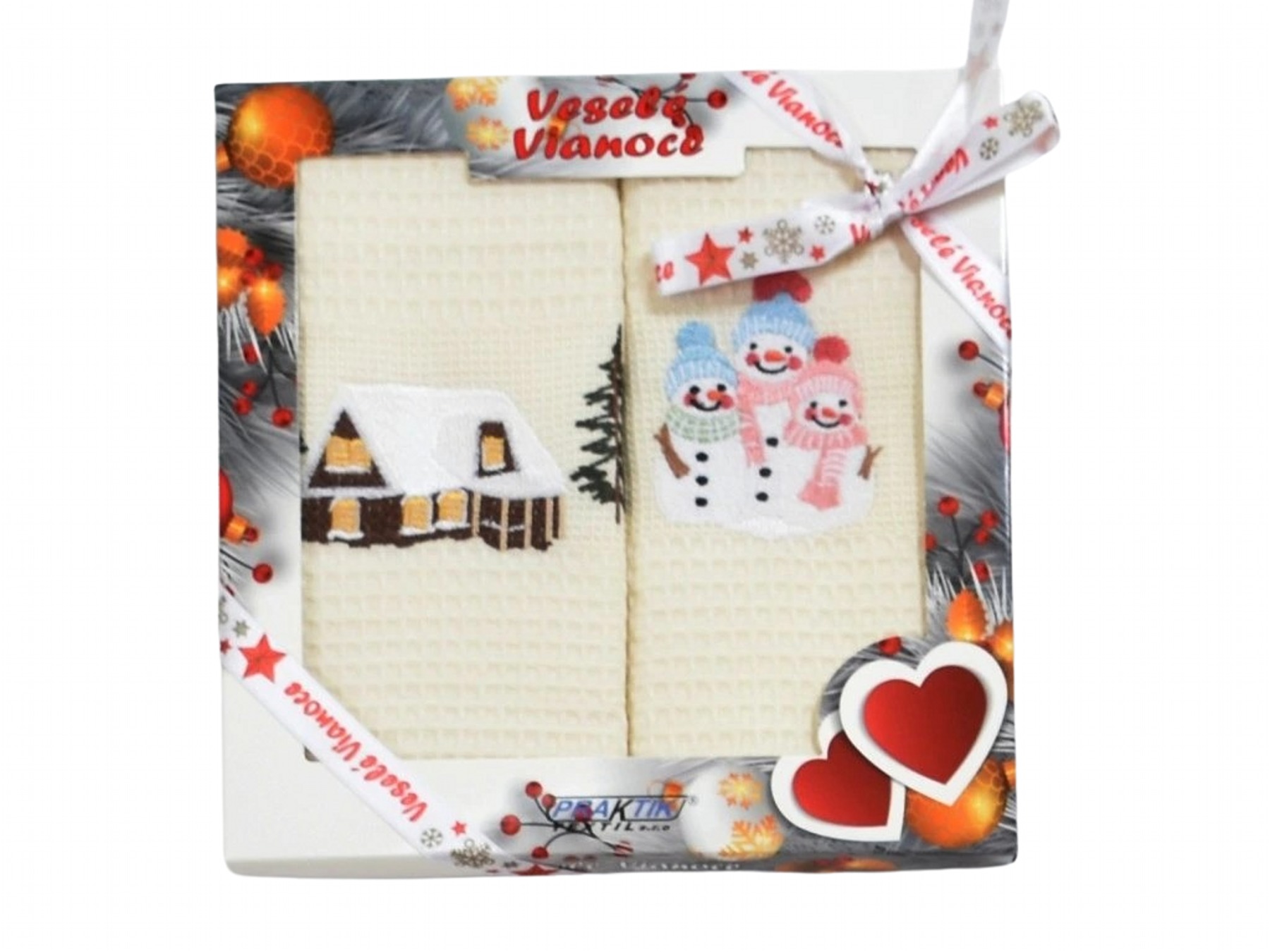 Vánoční dárková sada utěrek 50x70 Sněhuláci a domeček 2 ks
