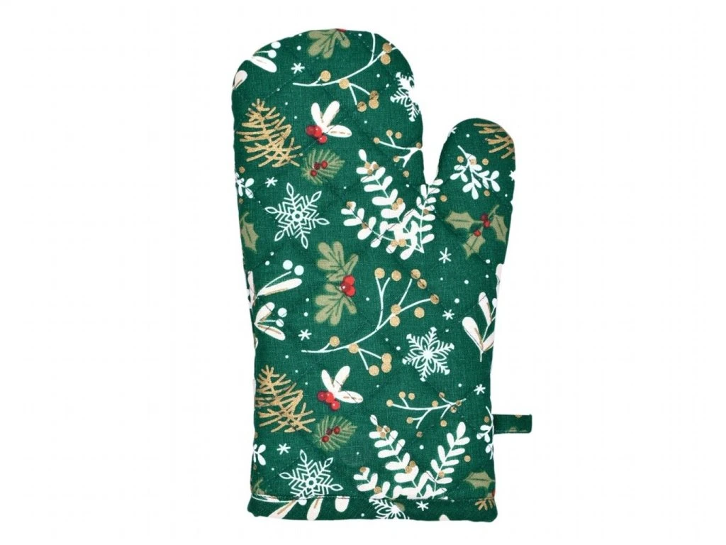 Stylová vánoční chňapka s motivem větviček, šišek a bobulek je praktickým pomocníkem každé hospodyňky. Chrání před popálením a zároveň přinese do vaší kuchyně kouzlo sváteční atmosféry. Pro dokonale sladěný vzhled můžete k chňapce dokoupit i zástěru, utěrky a povlak na polštářek ve stejném vzoru. Ideální volba pro vánoční výzdobu i praktické využití během svátečního pečení a vaření.