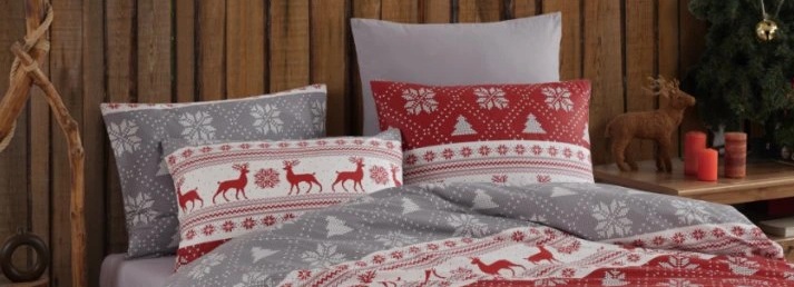 Design zdobí siluety sobů, sněhové vločky a stylizované vánoční stromečky, které připomínají pletené zimní svetry. Tento povlak je ideální dekorací pro adventní období i celé zimní měsíce – perfektní kombinace elegance a hravosti v jednom.