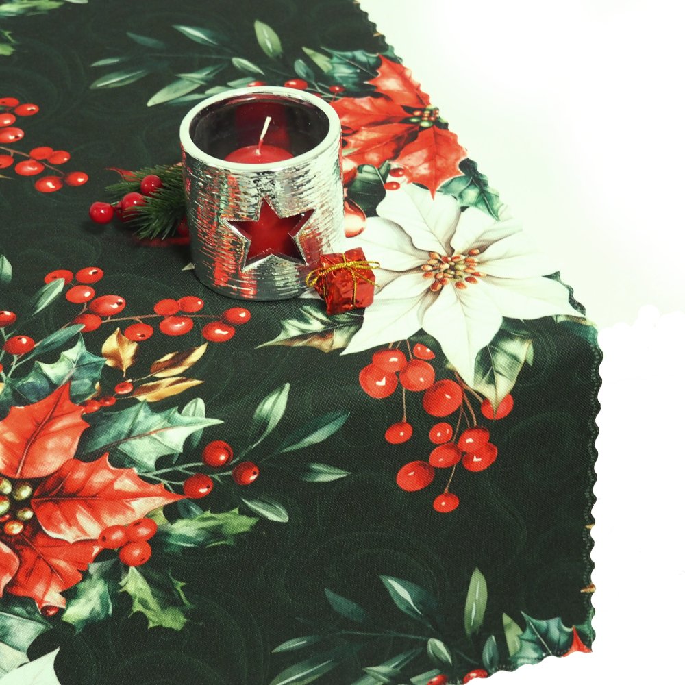 Vánoční ubrusy a běhouny na stůl – Vánoční růže na zeleném podkladu