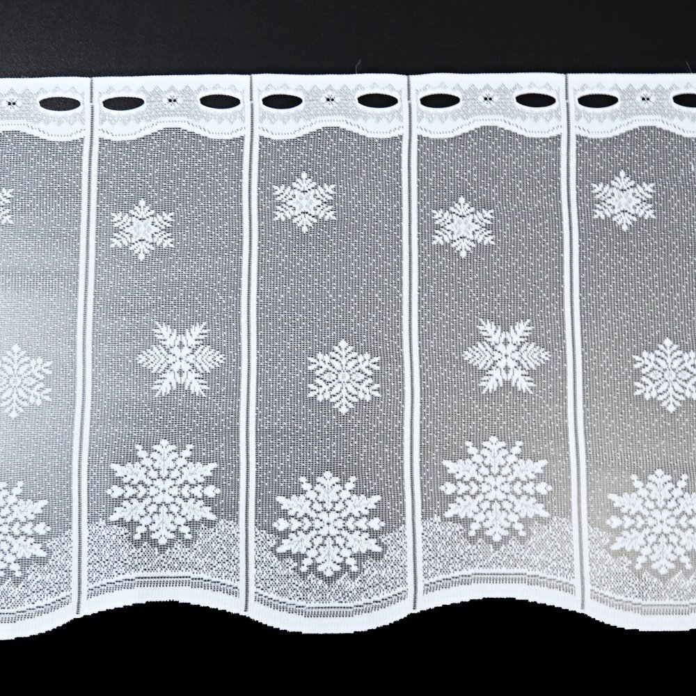 Oživte svůj interiér v adventním období záclonou se zimním motivem sněhových vloček. Vločky jsou výrazně zdobené na spodním okraji, což působí jemně a svátečně.