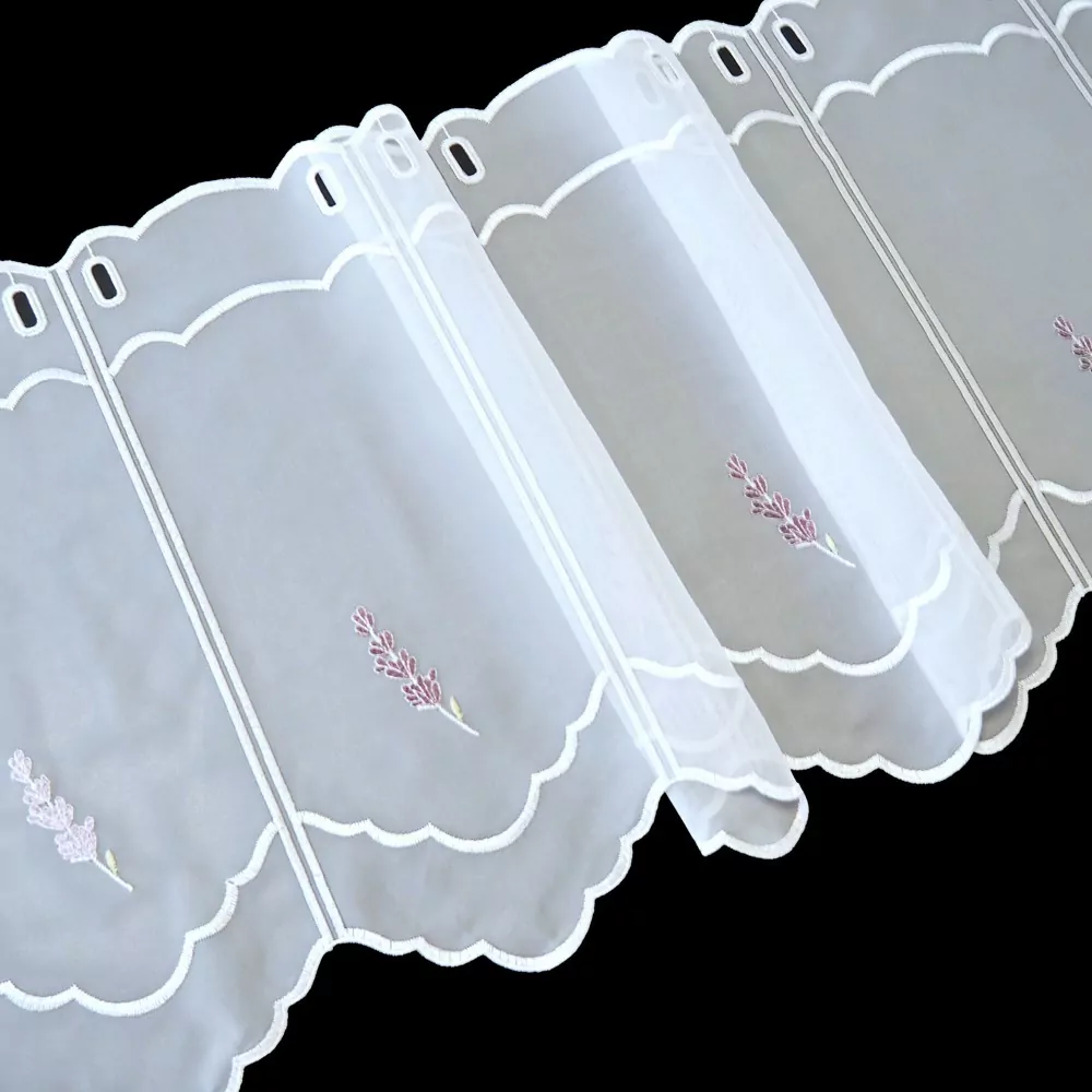 Voálová vitrážová záclona s velice oblíbeným motivem levandule.