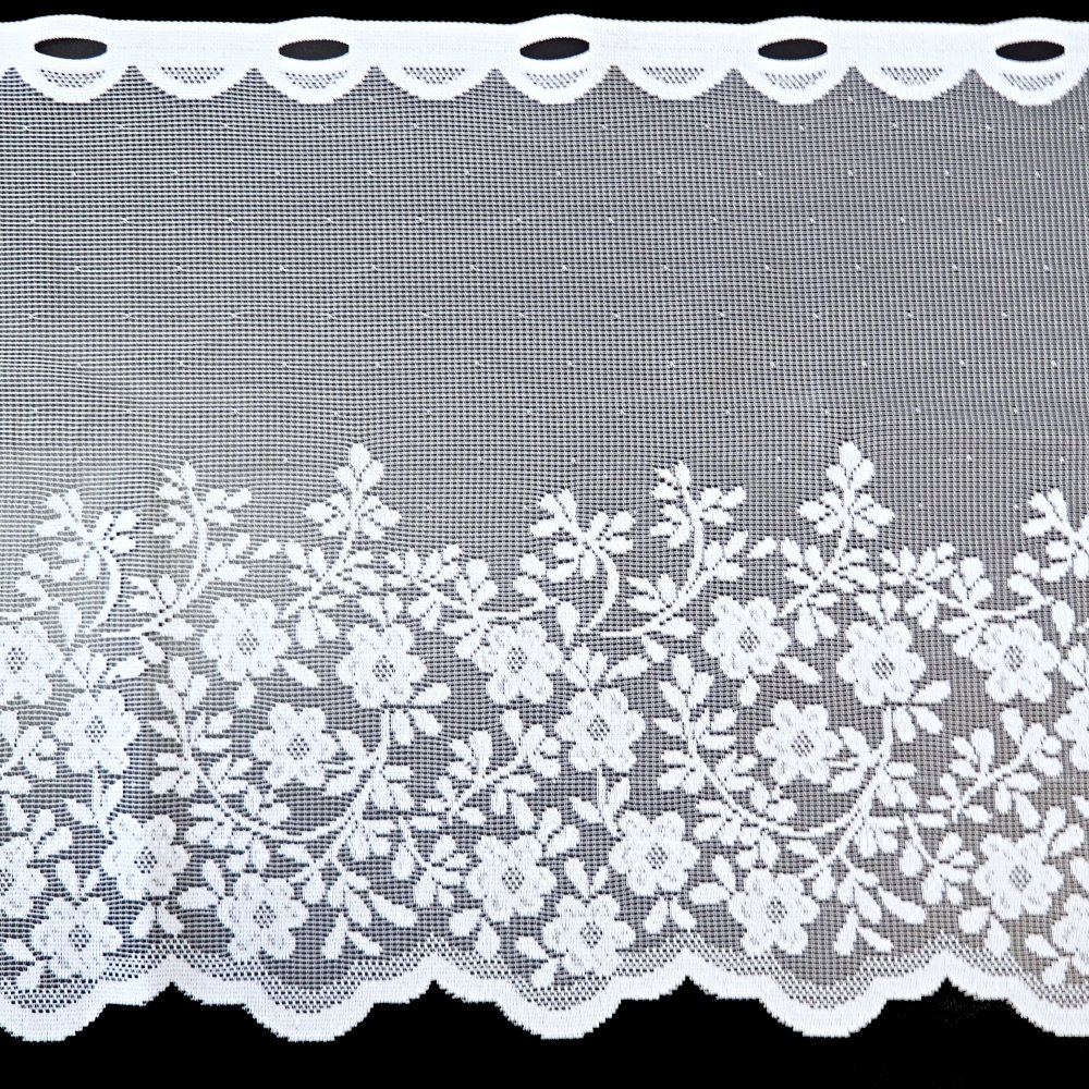 Upozornění: při objednání vitrážových záclon v metráži stříháme přesně na požadovanou délku, takže se může stát, že střih povede přímo očkem. Pokud si však zvolíte naši úpravu, například obšití boků, zajistíme, aby záclona končila vždy celým očkem.