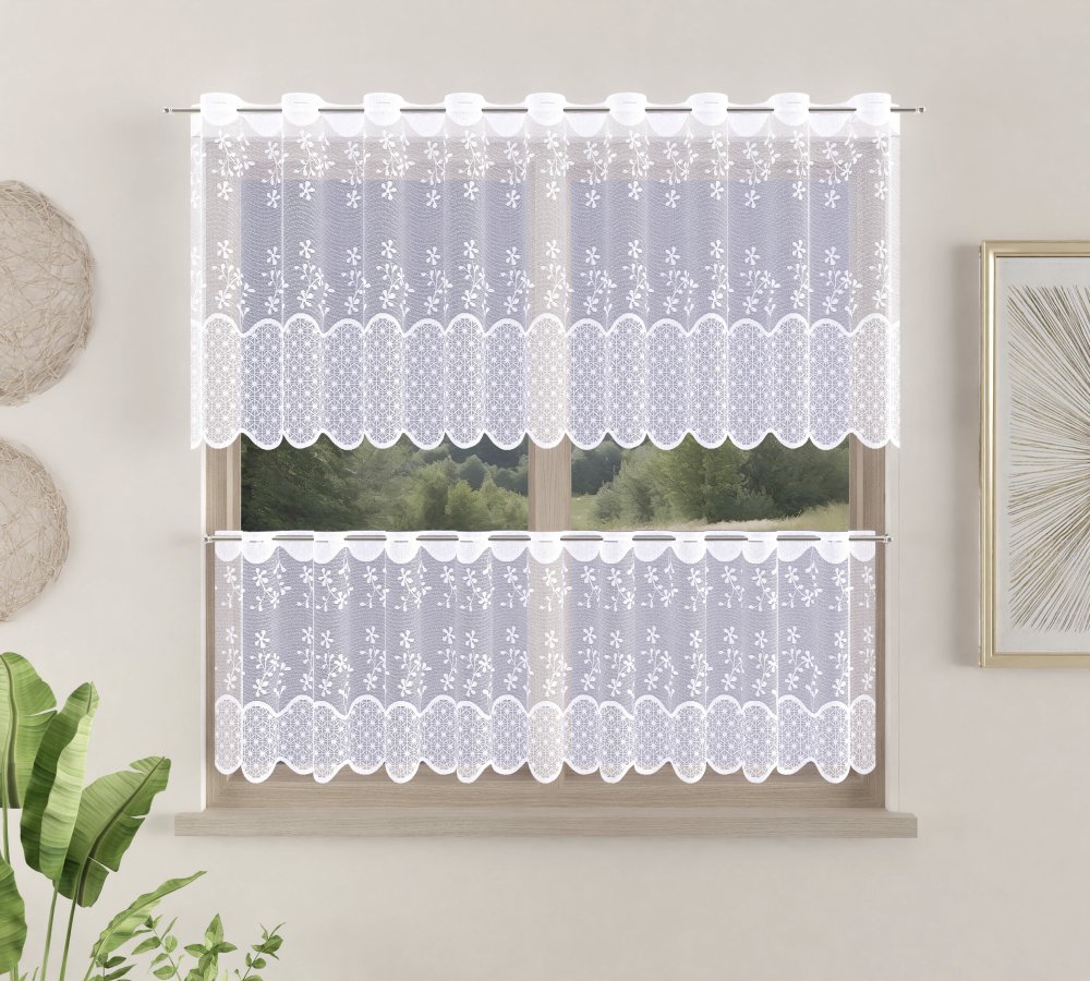 Vitrážová žakárová záclona pro snadné zavěšení