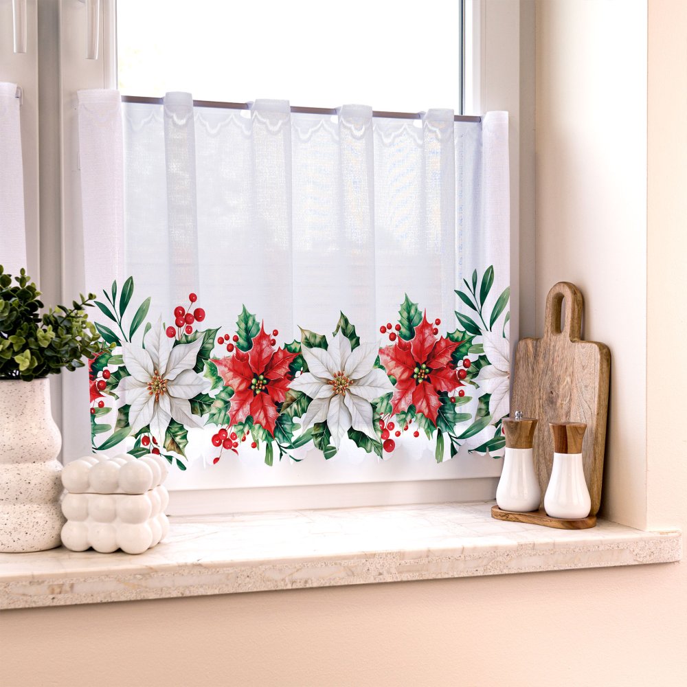 Vitrážová záclona Vánoční růže - výška 70 cmDodání do 7 dnů175 Kč/ m145 Kč bez DPH