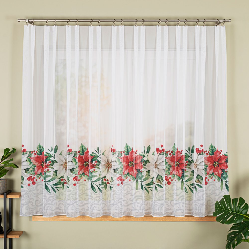 Zkrášlete svůj domov během Vánoc elegantní bílou kusovou záclonou s barevným adventním vzorem vánočních růží. Jemné pestrobarevné růže dodávají oknu jedinečný a sváteční vzhled, který rozzáří interiér a vnese do něj teplo i eleganci.