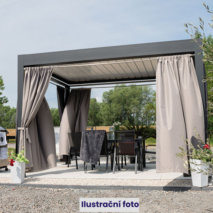 Polopropustná struktura tkaniny vytváří ideální rovnováhu mezi soukromím a přirozeným denním světlem, což z něj činí perfektní řešení pro terasy, pergoly, altány a balkony.