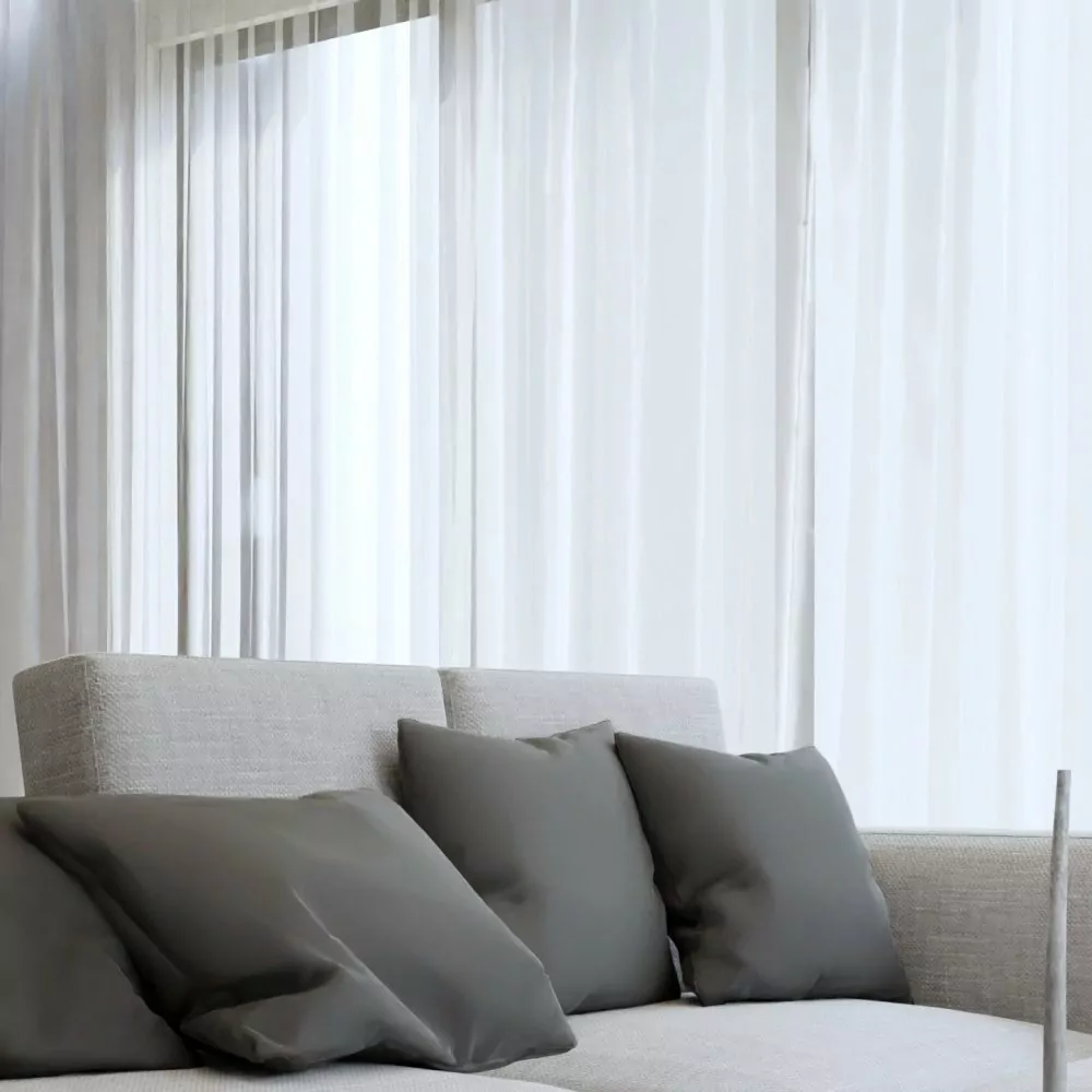 Jemná záclona s nehořlavou úpravou.