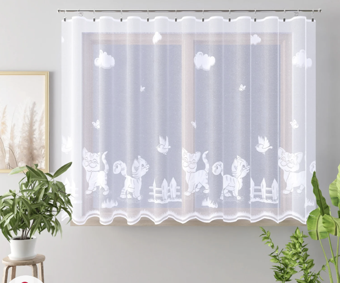 - Žakárová kusová záclona Kočička
