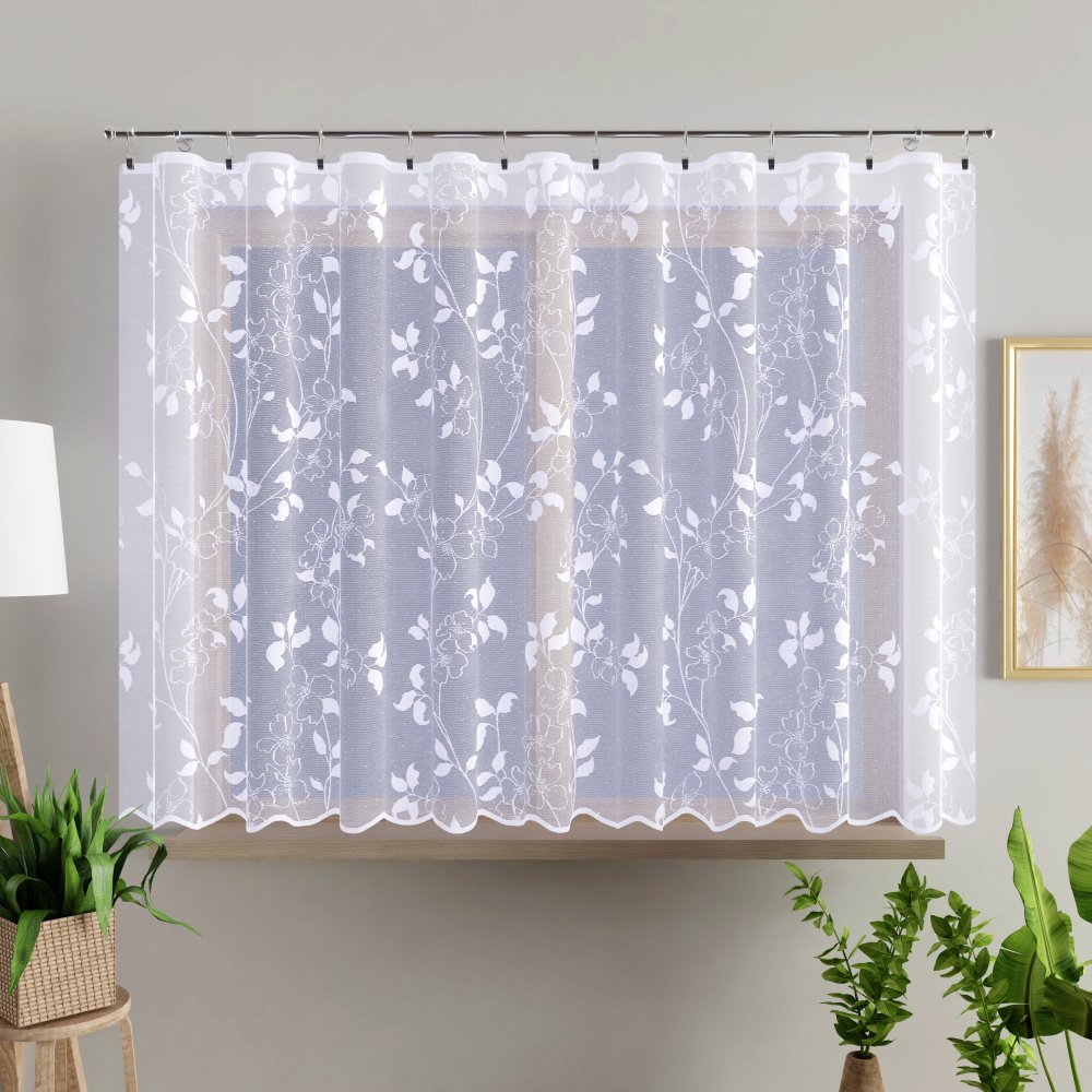 Elegantní záclona s jemným květinovým motivem krásně vynikne v každém okně a dodá interiéru svěží a vzdušný vzhled. Díky nadčasovému designu se hodí jak do moderních, tak i do klasických interiérů.