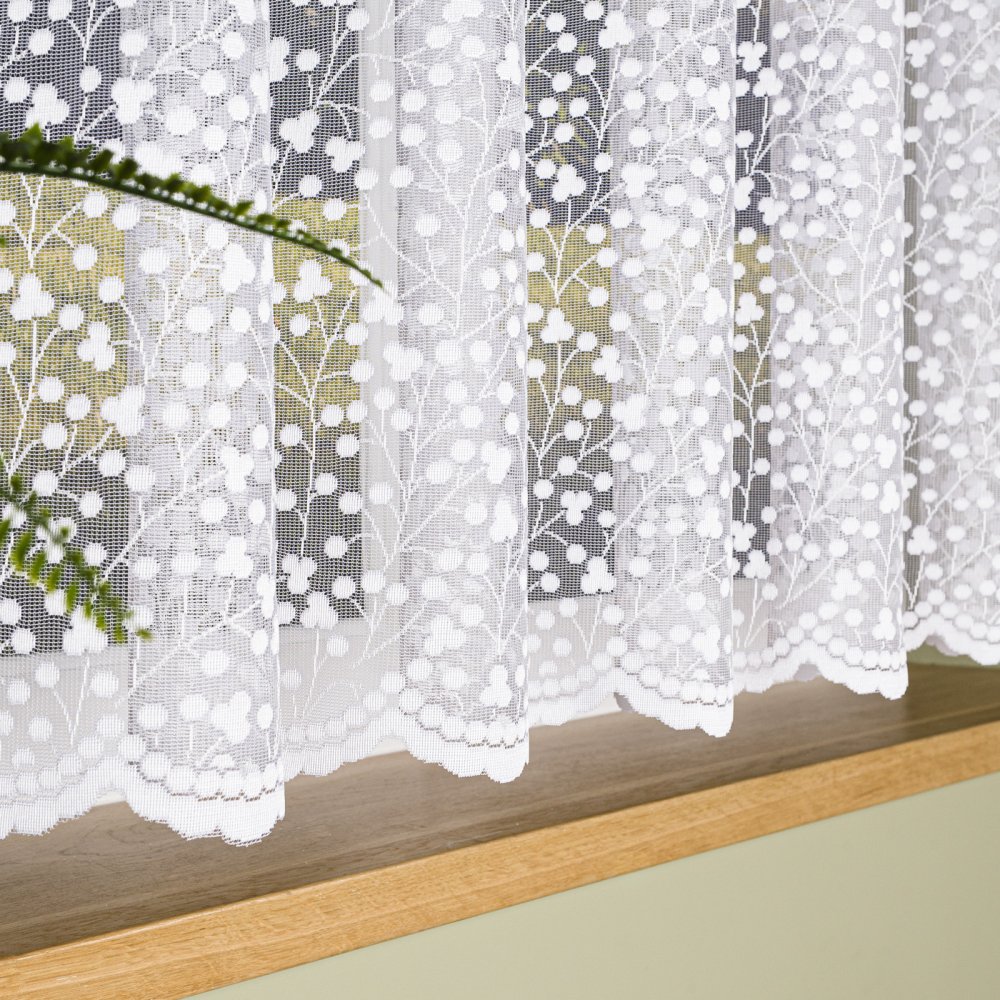 Bílá žakárová záclona Aluška 153 cm – metráž s výrazným vzorem