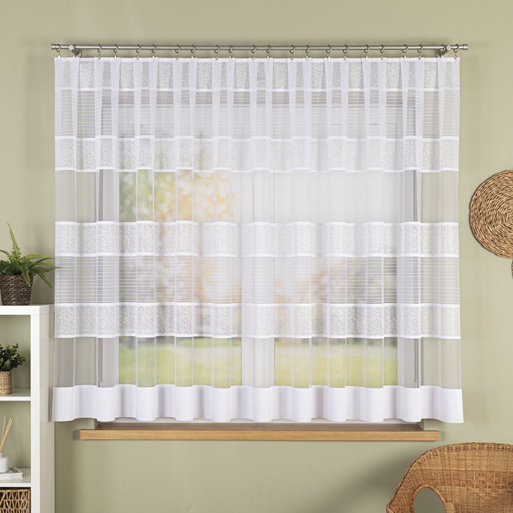 Bílá žakárová záclona Helga 157 cm – metráž s výraznými pruhy