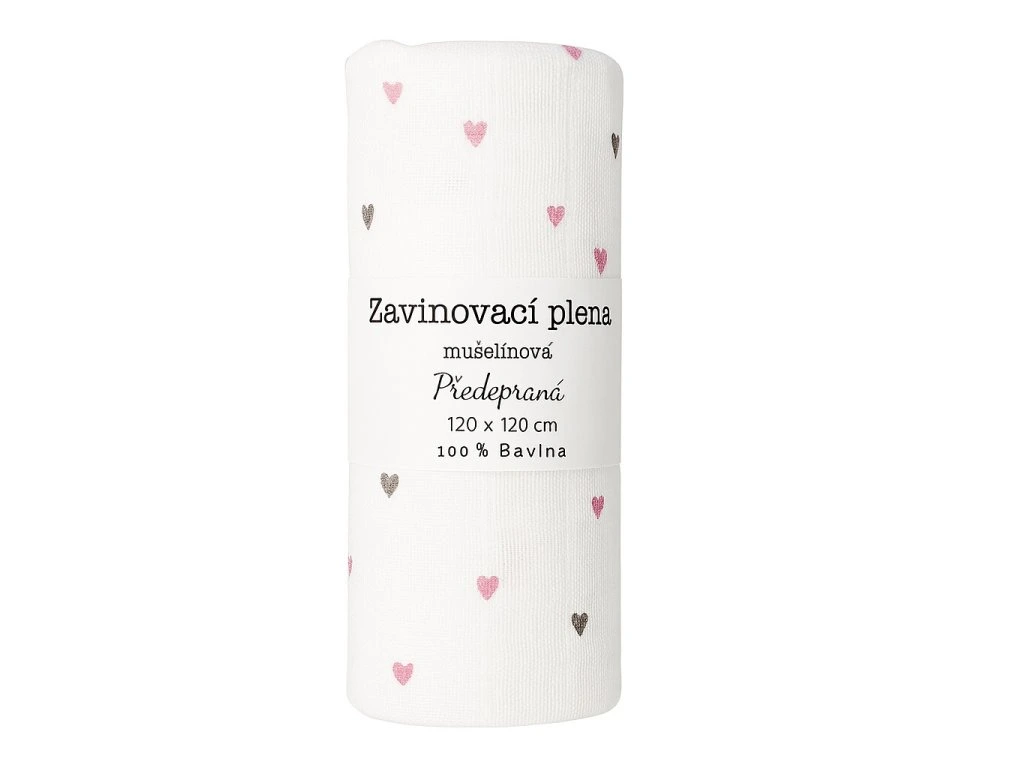 Tato kvalitní bavlněná plena s jemným srdíčkovým motivem je ideální pro každodenní použití – přebalování, krmení, podkládání i jako mazlík pro miminko.