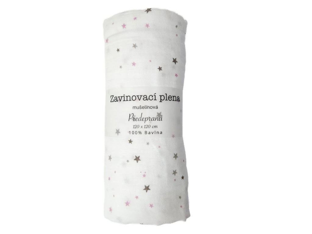Tato kvalitní bavlněná plena s jemným hvězdičkovým motivem je ideální pro každodenní použití – přebalování, krmení, podkládání i jako mazlík pro miminko.